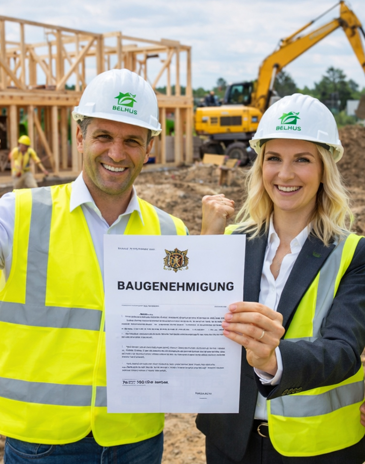Sobald die Genehmigung vorliegt, startet die werkseitige Produktion. Parallel dazu beginnen wir auf der Baustelle mit Erdarbeiten und Fundamenten — das spart Monate Zeit.